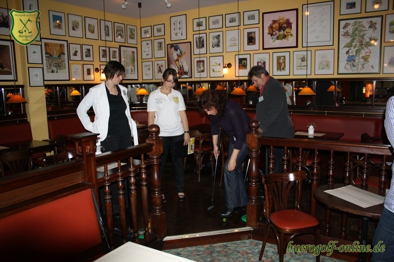 1. Bürogolf Club-Turnier (Eröffnungsturnier) im Amber Hotel am 14.10.2010 / HotelgolfAm 14.10.2010 war es endlich soweit – das Erste Turnier des 1. Chemnitzer Bürogolf-Clubs fand im Amber Hotel Chemnitz statt. Geladene Gäste und eingeschworene Bürogolfer aus Dresden ließen sich dieses Ereignis nicht entgehen. Die gemischten Gruppen von erfahrenen Indoor-Golfern und Bürogolf-Neulingen spielten sowohl durch die Konferenzräume des Vier-Sterne-Hotels als auch durch die Suiten. Ein besonderes Highlight war der Parcours durch das 1001-Nacht-Zimmer, das die Spieler während des Puttens in die Welt des Orients entführte. Begleitet wurde das Turnier von dem vielfältigen Buffet des Hotelrestaurants und großem Interesse der Presse. Zeitungsartikel und Fernsehbeiträge zu diesem Turnier finden Sie in der Rubrik Presse. weitere Videos finden Sie im Pressebereich Vielen Dank an Peter Dyroff und Gregor Hein für den Großteil der Fotos. |