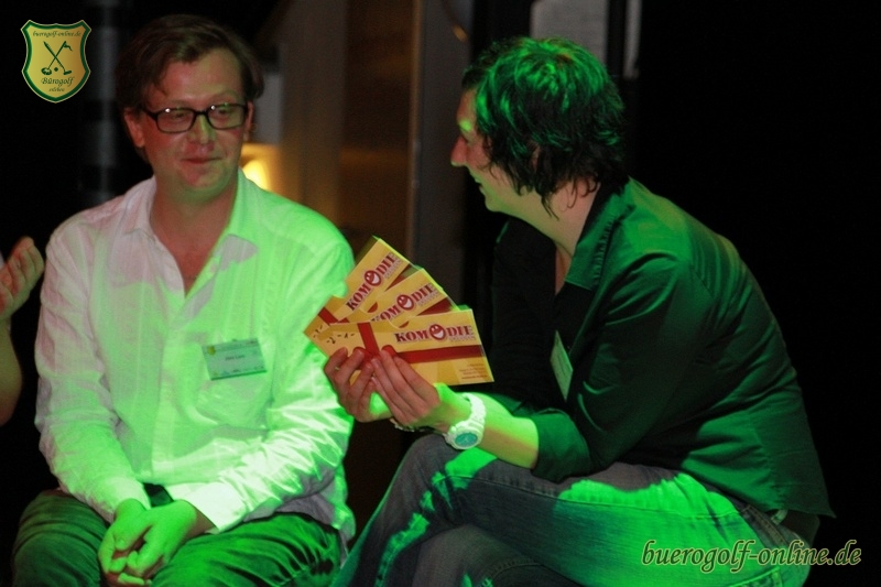 14. Bürogolf Club-Turnier in der Komödie Dresden am 22.07.2010Das war ein Spaß in der Komödie! Am 22.07.2010 fand das 14. Club-Turnier des Dresdener Bürogolf-Clubs in der Komödie Dresden statt. Während ein Gewitter über der Stadt lag, führte uns der Parcours von den Kassen durchs Foyer, hinter die Kulissen und über das Parkett wieder zurück. Schon während des Spiels genossen die Bürogolfer leckere Häppchen unseres neuen Cateringpartners Salumeria. Vor der Siegerehrung im Saal wurde bereits zum zweiten Mal ein 360°-Bild aller Teilnehmer gemacht. Danach erhielten die drei Erstplatzierten begehrte Freikarten für verschiedene Darstellungen in dem privaten Theater. Ein rundum gelungener Abend. Vielen Dank an alle Teilnehmer, an unsere Sponsoren und an den Gastgeber Komödie Dresden. Klicken Sie auf das Foto für eine 360° AnsichtVielen Dank an art2viz (Bert Siegel) für den Großteil der Fotos. Urheberrechtsvermerk Panoramen/Fotoarbeiten: |